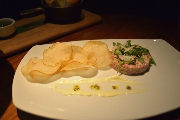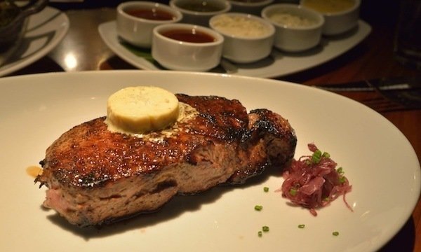 STK, is part restaurant / part club. Passing by the beautiful bar, you’ll head up the stairs to the comfy rounded booths where your exceptional evening begins. Cocktails are a must here like the Cucumber Stiletto. Some fantastic starters are the Beef or Tuna Tartare. For entrees, scallops don’t disappoint, but at least one must get a steak. I recommend the Sirloin, dripping with butter and served with eight, yes eight dipping sauces (see picture below).