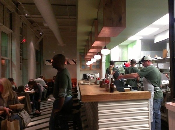 There’s no table service at Bantam + Biddy: this is fast casual, baby. Starters include items like Deviled Eggs or Poutine, fries with cheese and gravy. Pick a meat and two sides. Choose from sides like mac and cheese, broccolini, mashed potatoes, and of course duck fat fries.