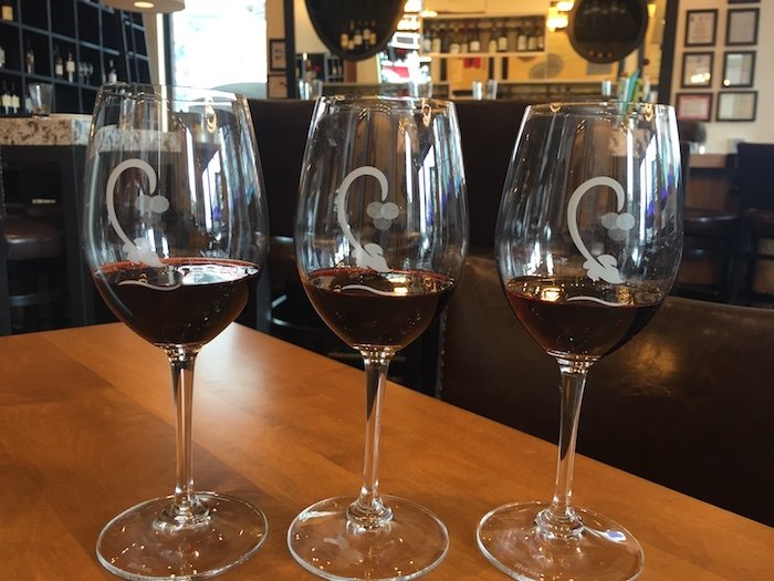 CRU has launched a new lunch menu, which includes items like Lobster Pot Stickers (my favorite) and a bruschetta with figs. Those are excellent starters that would go well with a flight of whites or even a light grouping of reds like Pinot Noir. For my main, I chose the crab and avocado sandwich (above right). Rather than a full sandwich, it was served more like the bruschetta and a side of arugula. The light lunch was perfect and didn’t leave me feeling sluggish the rest of the afternoon.