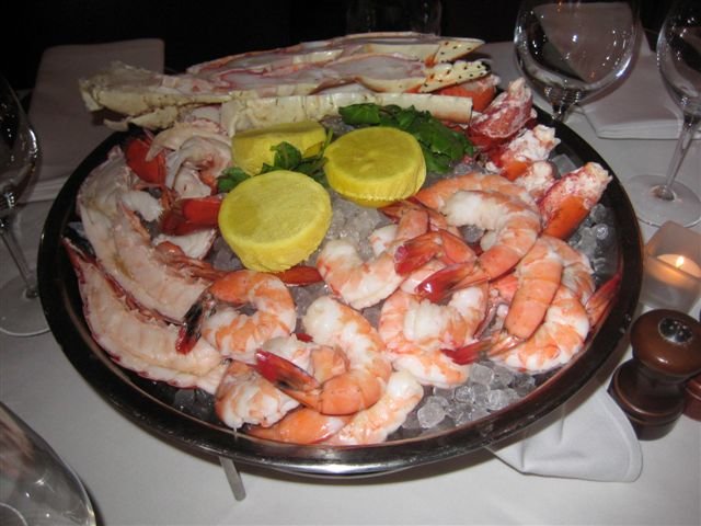 Although I’d never been to Bone’s before, I surmised that probably not much has changed as far as the interior in it’s near 40 years of existence. I’m certainly not dinging them for this. After all, it is still a classy place, just not super trendy, and a young hipster crowd you won’t find here indeed. I inquired at the host stand as to where my wine tasting would be, and was ushered to the private room. It wasn’t a minute after seating that a server asked if I would like anything besides wine to drink. Shortly after that we were brought gigantic seafood platters.