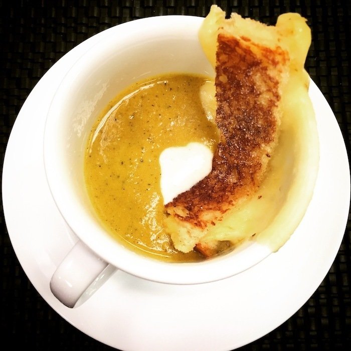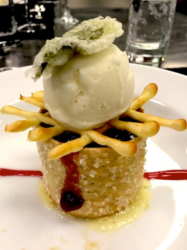 Next up, we sampled a Carrot Soup with grilled cheese. What’s so neat about these behind the scenes Chef’s Table is that we see the neat contraptions that they use to create the dishes, like a sifter that was used with out soup. A third course was fried Quail with Buttermilk Pancake, Sorghum Vinaigrette, Apple and Frisee (pictured at the top of this post).