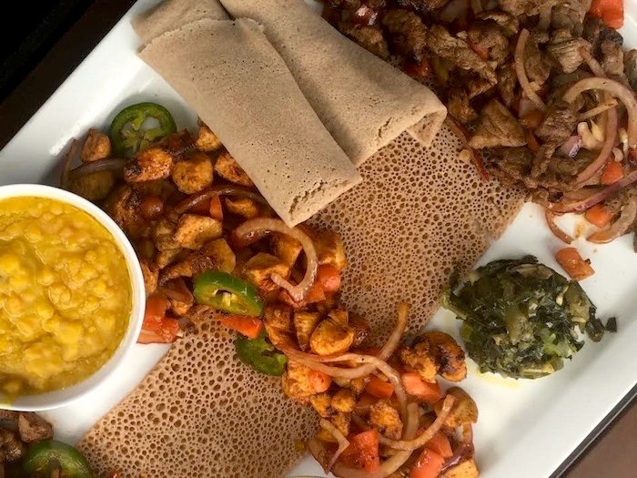 Desta means happiness, I learned from reading the menu. There are other common words you can learn as you peruse the large menu. But there’s one word in particular you want to remember: Injera. It’s the sponge-like bread that should be your carb of choice for accompanying your entree.