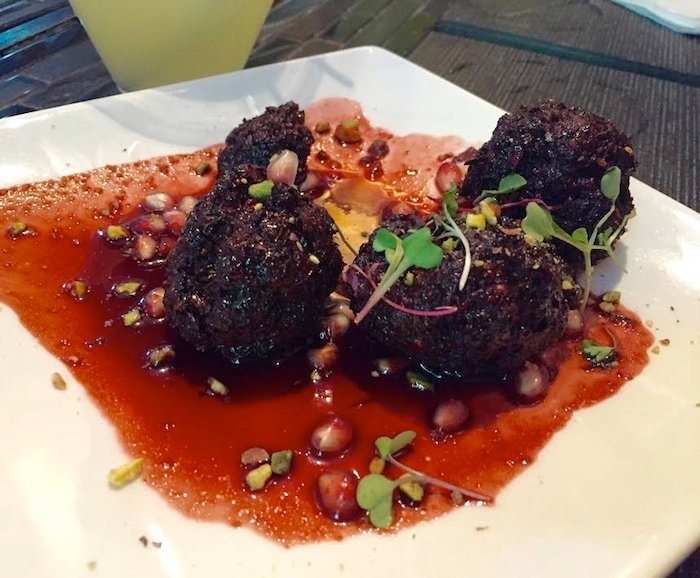 The Divan menu offers a few traditional Mediterranean favorites including their “Hummus Duo with Tabouleh” served with their fresh “Tandoori Naan Bread”, which can be consumed in rather large quantities. It would be wise to pair their “Spicy Shrimp” alongside the Hummus Duo, but those who are especially keen on taste adventures should try the “Turkey and Pistachio Kufta”. The Kufta is like a turkey meatball, enhanced with a medley of herbs and spices and topped with a pomegranate glaze that could not be more dynamic. Pair this with a fine red wine- Pinot Noir would go well with the lean meat and sharp pomegranate sauce.