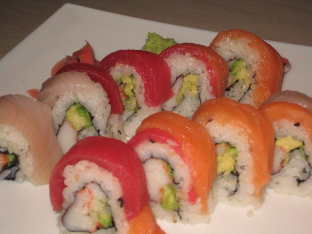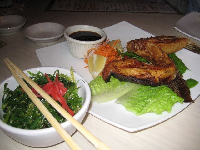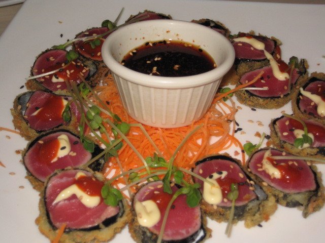 Our server, Petia, a total pro, was well-versed in the cocktail and sushi menu. As she highly recommended the Mango Martini and the Red Samurai cocktail, we were more than happy to oblige. And these cocktails didn’t let us down. I loved the Red Samurai with the pomegranate juice. Since the drinks were such a hit, we let Petia steer us in the direction of appetizers too, choosing the Hamachi Kama (yellowtail) and the Tuna with wontons. Very fresh and delicious, I enjoyed every bite.