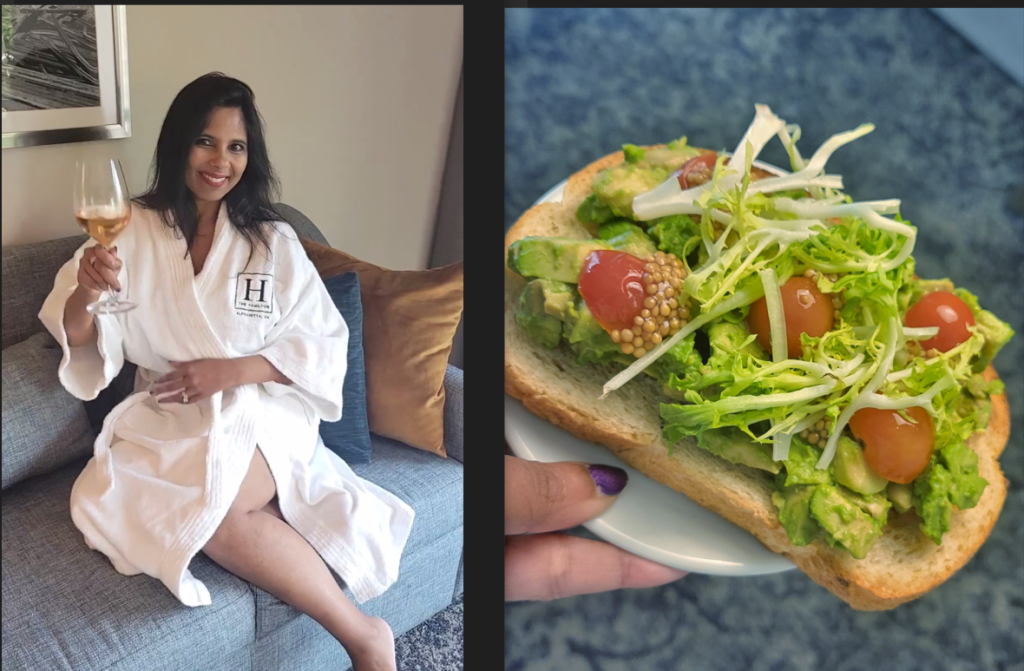 Another one of the hallmarks of a fabulous staycation is room service. Sure, when I am traveling, I want to soak up as much of the culture as possible and that includes trying the local cuisine for as many meals possible. And on a weekend that means brunch. However, the staycation vibe is totally different. Staycations are about slowing down and whether you are traveling solo or with a significant other or friends, isn’t it about reconnecting or just chilling? Room service allows you to do just that. Our room service arrived quickly – about 20 minutes after placing my order. Eggs and crispy bacon and avocado toast were just what the staycation doctor ordered. Of course, they do have a breakfast buffet in the lobby, if you prefer that.