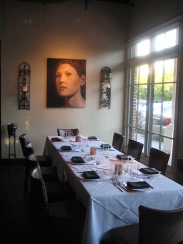 We put in our appetizer order but not the entree order as we were taking our time deciding what to order. Looking around at the other diners, this seems to be groups of couples and friends in their upper 40s. Not too many gen exers like me here. But the one thing that struck me is how many of the diners seemed to know each other. I saw table after table of customers that at one point or another during the evening recognized someone they knew and were giving them a hug. Not to be excluded, I ran into an acquaintence myself. A true wine connesseiur, she was able to recommend a terrific Shiraz to pair with my dinner.