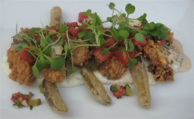The crab cake was tasty and served with some grape tomatoes as well. I thought this would be my favorite appetizer, but I actually enjoyed the fried oysters more. They weren’t simply served by themselves. Nope. Haven’s fried oysters come with fried pickles on a bed of creamy lemony grits. While the oysters themselves are tasty, the side dishes only serve to strengthen and compliment the dish.