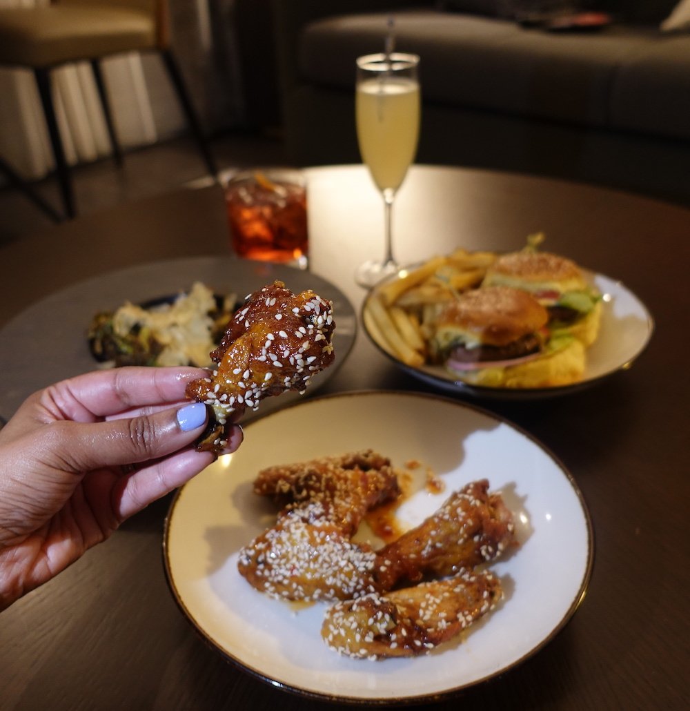 We were famished when we got back to Hoel Colee, and while it was our intention to go to Whiskey Blue, we wanted food and they stop serving at 10 so we just got more room service. Again. Sliders, wings and brussels sprouts so we can say we ate something healthy. I appreciated the real plates and silverware for dinner. If you are headed up to Whiskey Blue definitely get the Negroni and the Lady Lavender cocktails. That Negroni is a strong well made drink and the LL from Hotel Colee’s Whiskey Blue is much more demure.