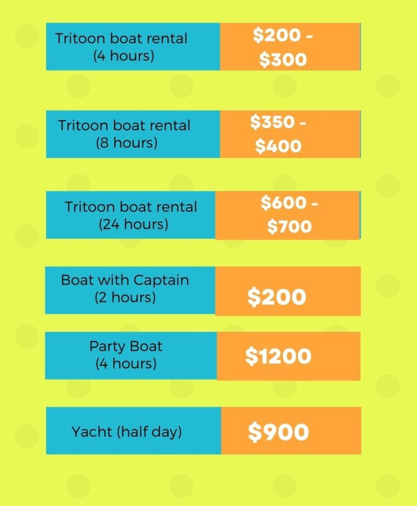 Tritoon boat rentals $200 – $300 (4 hours)