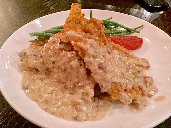 Quite full from appetizers, I barely made a dent in entrees. The hanger steak was prepared a perfect medium, but it was the fried chicken I was more taken with. Though based on the menu  description it seems pricey, there’s good reason – it comes with 3 huge pieces. Instead of a breast or bone in, these are thinly sliced cutlets. The pepper batter and smoked bacon jalapeño gravy is delectable close to a chicken fried steak. It’s the ultimate comfort food.