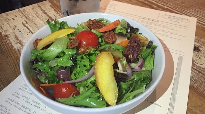 On a recent Sunday, we were able to walk right in for brunch with no wait! I love the rustic decor and laid back feel of South Main Kitchen. Plus the music is perfect – not too loud and songs you know from the 80s and 90s. Plus our server, Karma was outstanding. Ask for her when you go there.